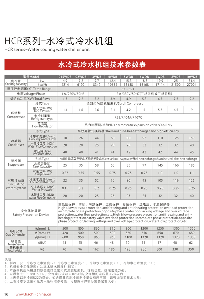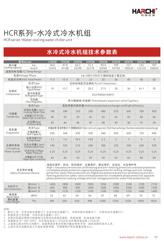 產(chǎn)品特點(diǎn)Features: 1、采用國(guó)際最先進(jìn)的渦旋式或活塞式壓縮機(jī),電器及制冷系統(tǒng)原器件全部為世界著名品牌; 2、冷卻水泵及管路系統(tǒng)全部采用不銹鋼材質(zhì),確保水質(zhì)更潔凈,使用壽命更長(zhǎng)久、制冷效果更穩(wěn)定; 3、水冷系列需要配置冷卻水塔及冷卻水泵,冷水機(jī)放置在室內(nèi),噪音比較低,制冷效果更好。水冷冷水機(jī)安裝好以后不能移動(dòng),應(yīng)用于通風(fēng)散熱不是很好的環(huán)境; 4、機(jī)組采用進(jìn)口高精度電子顯示器,內(nèi)置P.I.D 自動(dòng)演算功能,啟動(dòng)延時(shí)功能,控溫精度在±0.5℃范圍內(nèi),且控制溫度范圍在3℃~40℃之間; 5、為保證使用安全,機(jī)組內(nèi)置漏電保護(hù)器、相位保護(hù)、過(guò)載保護(hù)、電流保護(hù);系統(tǒng)安裝了高、低壓保護(hù)傳感器,為防止缺水或循環(huán)水系統(tǒng)內(nèi)部結(jié)冰,機(jī)組安裝了流量開(kāi)關(guān)和低液位保護(hù)裝置。