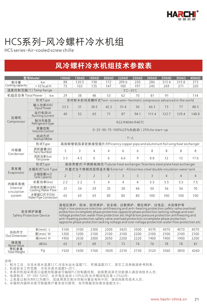 5、風冷冷凝器全部采用進口風機及大風量低噪音軸流設計,換熱效率更高;風冷系統(tǒng)無需配置冷卻水塔及冷卻水泵,安裝簡單,移動方便,適合生產場地比較緊缺的環(huán)境使用;